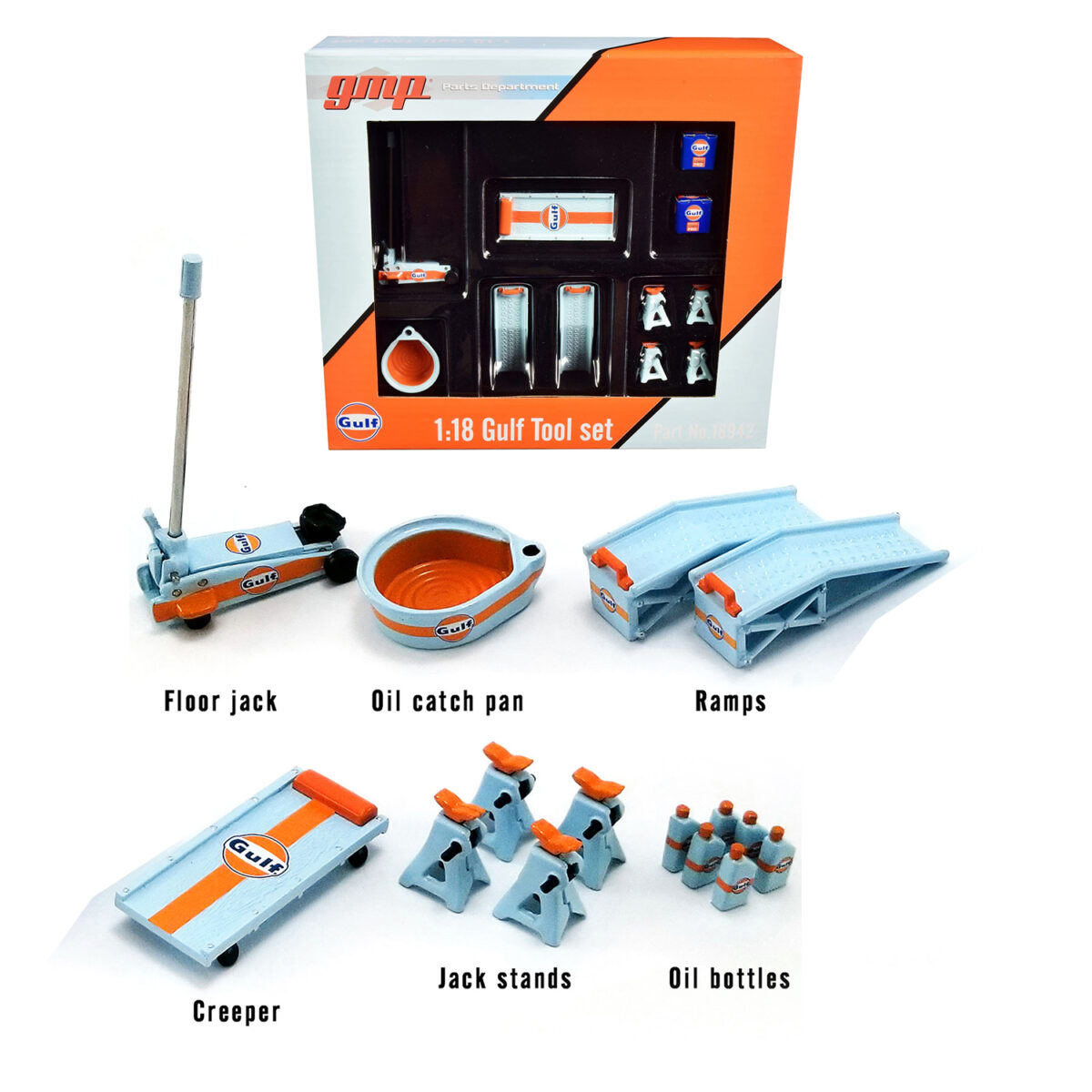 Set herramientas 1:18 GMP Shop Tool Set #2 – Gulf Oil